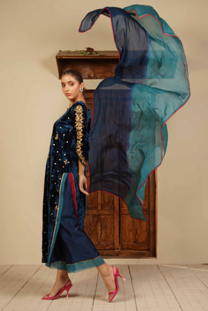 Cosmic Glitter – Luxury Velvet & Sheesha Silk Ensemble