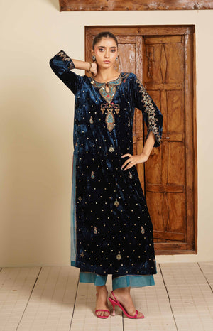 Shirt Only, Shirt - Pant, Shirt - Pant - Dupatta, Shirt Fabric Change: Sheesha Silk instead of velvet, Sheesha Silk Shirt - Pant, Sheesha Silk Shirt - Pant - Dupatta, Lighter Version: No embroidery on the back, Light Version - Pant, Light Version - Pant - Dupatta |